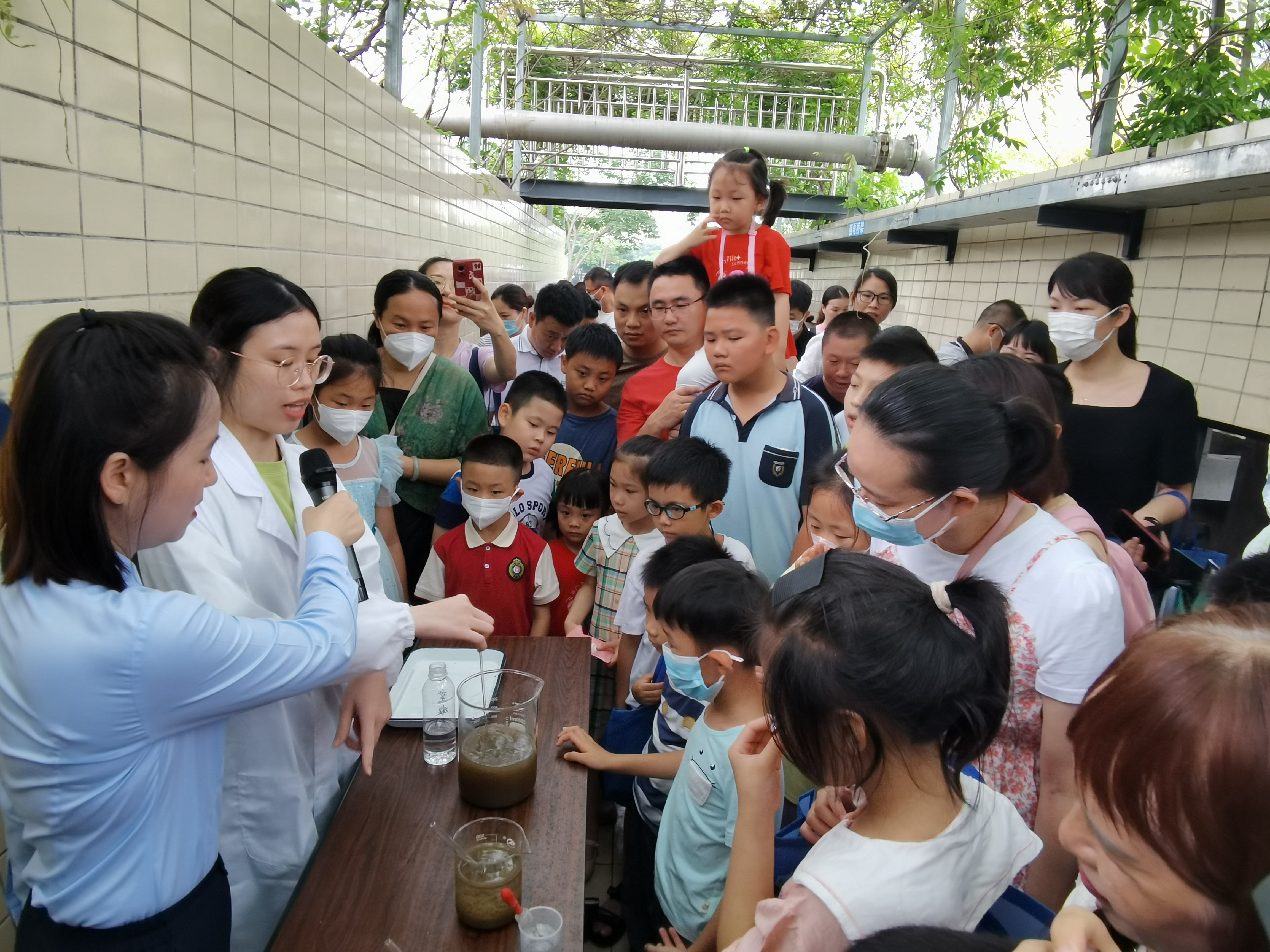 市民們通過實地參觀展廳和江南污水處理廠廠區,對節約用水、垃圾分類和污水處理工藝有了更深入的了解。在江南水質凈化廠展廳內,講解員向參觀市民講解水科普知識并結合節約用水宣傳視頻介紹當前南寧市水治理成效。在水科普館,講解員邀請孩子們一起參與凈水科學小實驗,讓大家直觀體驗“污水變清水”的過程。